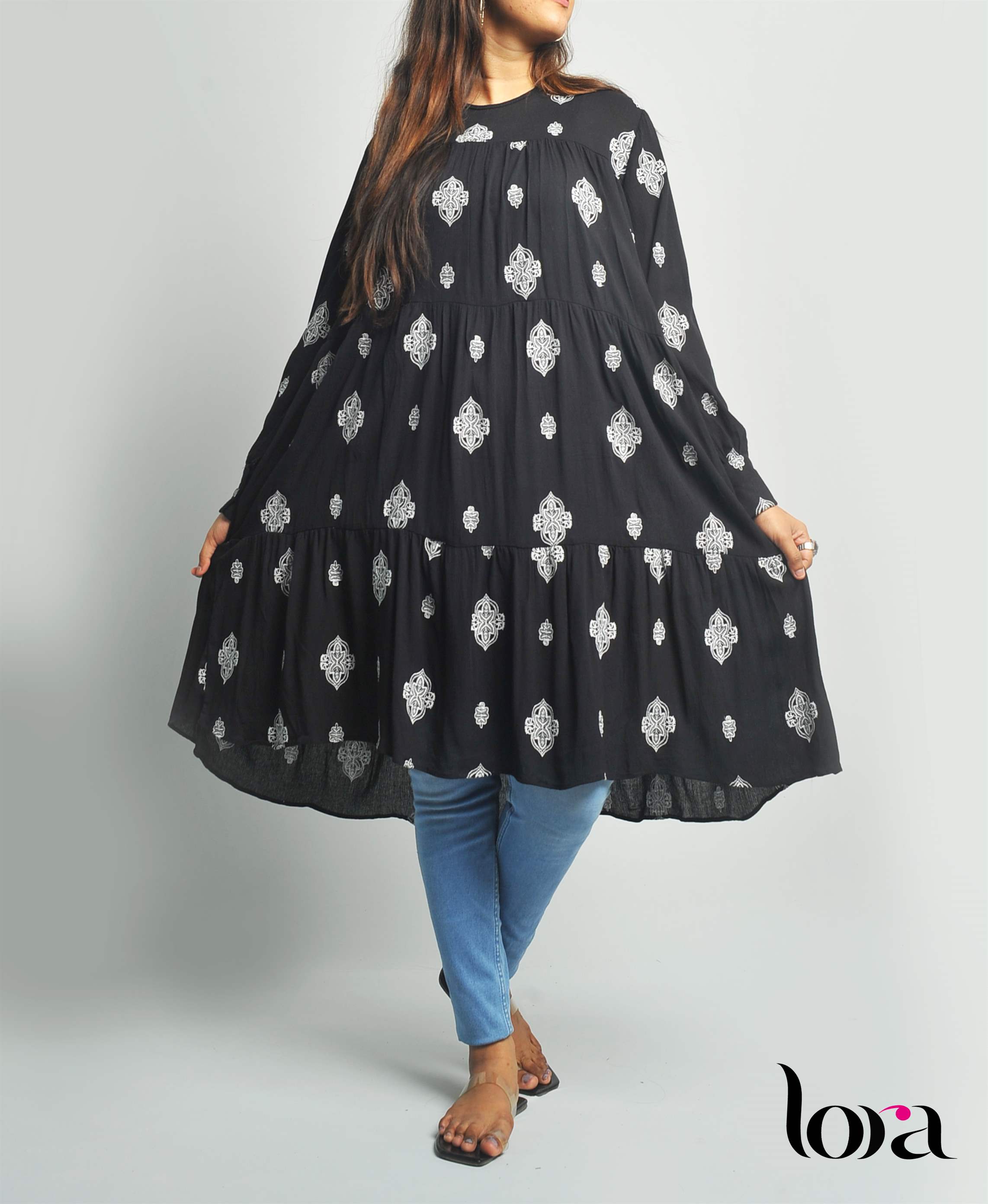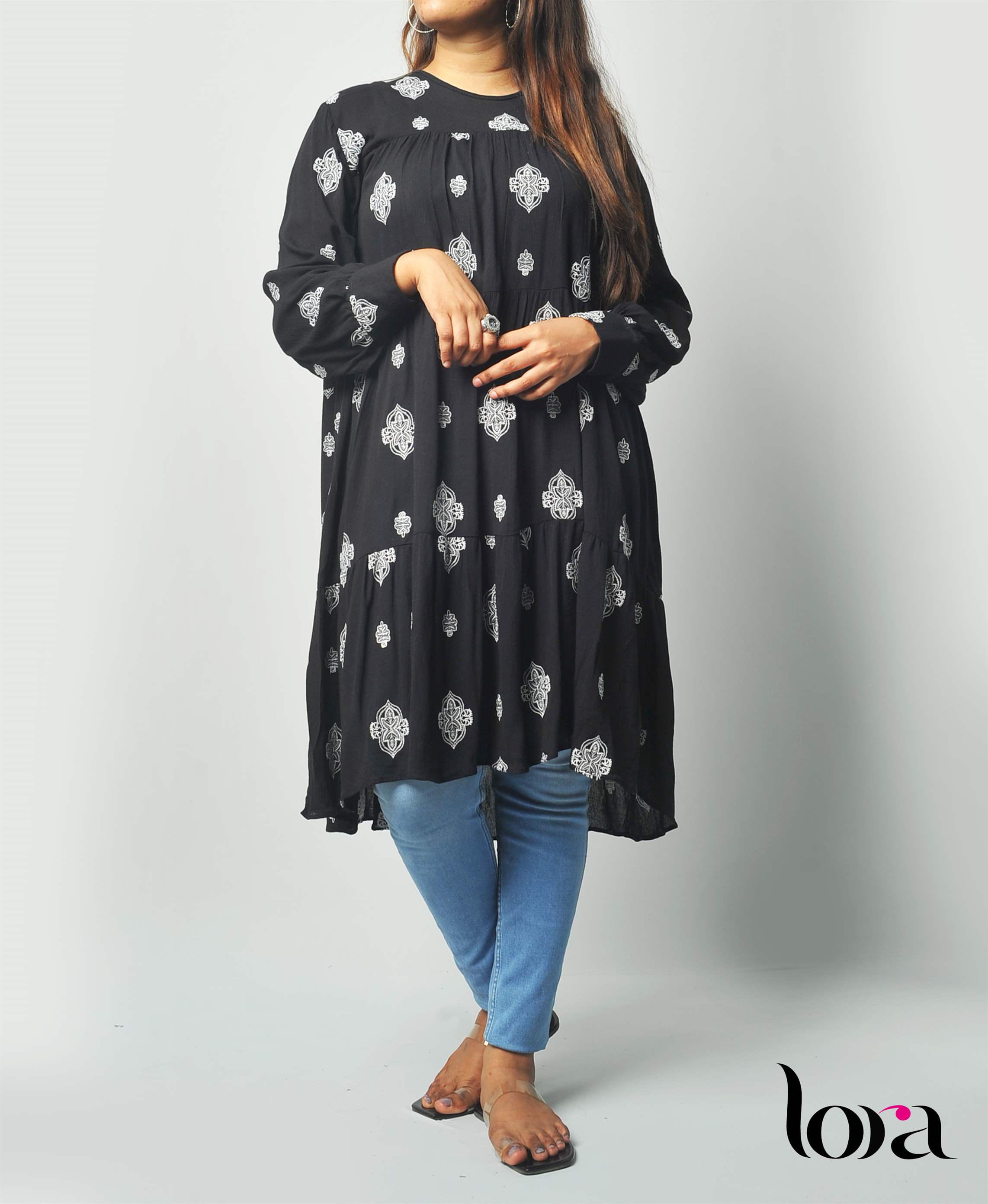 Product Details Fabric Type And Detail/Feel Cheese Cotton. Knee length tops. Long sleeve. Neckline / Collar Crew Neck. WASHING INSTRUCTION Hand wash cold. Do not bleach. Hand dry Iron low MODEL INFORMATION Model Is Wearing L size Bust Measurement: 30 Inches Waist Measurement: 32 Inches Hip Measurement: 32 Inches