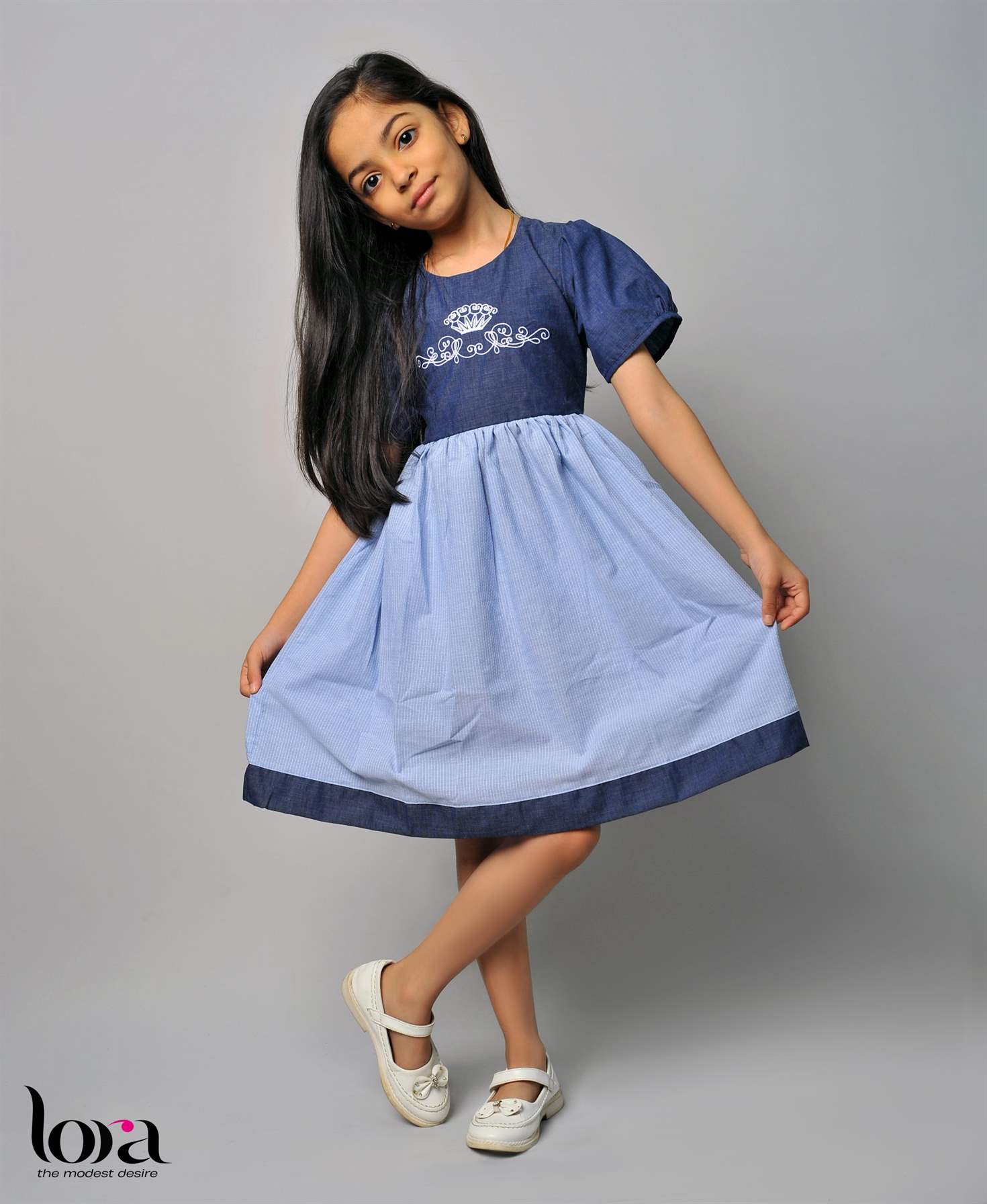 Blue Embroidery Kids Frock L