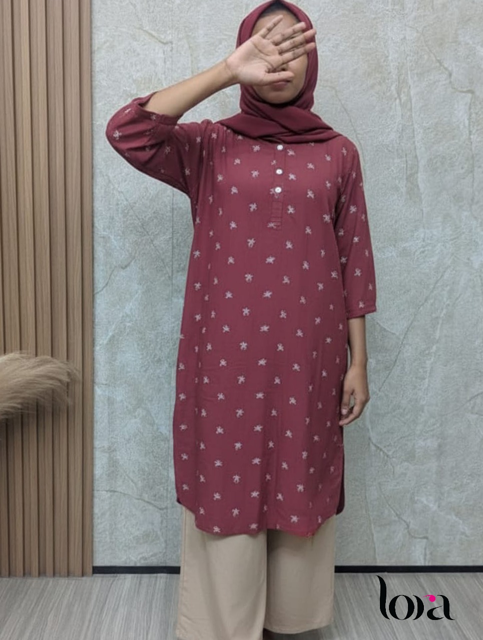 PLUS SIZE-HALF PLACKET TOP MAROON 2XL