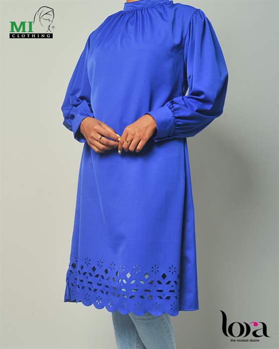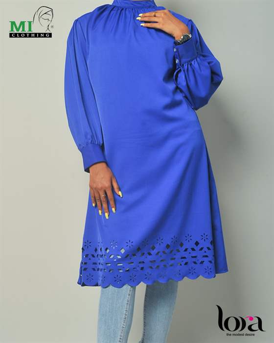 Product Details Fabric Type And Detail/Feel Thick Georgette. Below Knee Length Tunic. Cuff Sleeve. Neckline / Collar Gathered Neck Collar. WASHING INSTRUCTION Hand wash cold. Do not bleach. Hand dry Iron low MODEL INFORMATION Model Is Wearing UK Size : 14 / Our size Medium Bust Measurement: 40 Inches Waist Measurement: 38 Inches Hip Measurement: 38 Inches